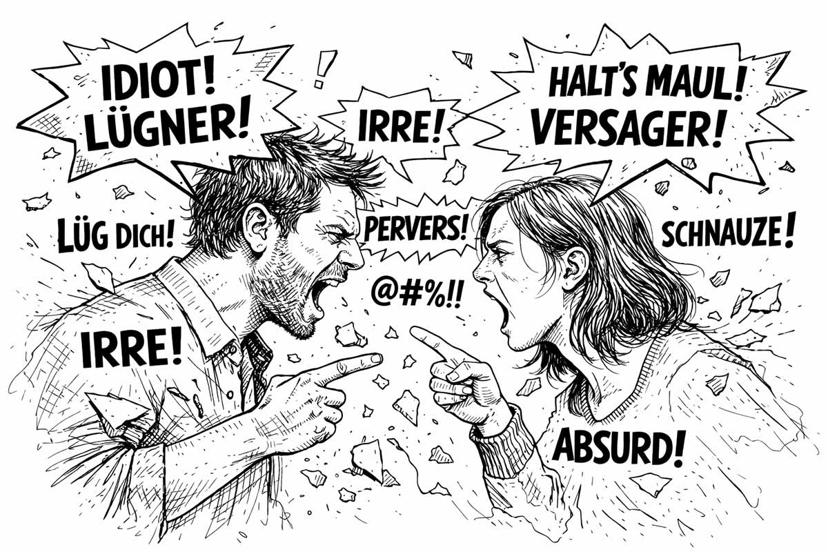 Beleidigung ist die Kundgabe der Missachtung oder Nichtachtung gegenüber einer anderen Person. Das kann geschehen durch Worte (»Idiot«, »pervers« u.a.), durch Gesten oder Schriftworte (auch online). Entscheidend ist nicht primär, ob die Aussage wahr ist, sondern ob sie die Ehre verletzt, denn auch wahre Aussagen können eine Beleidigung sein, wenn sie mit herabsetzender Absicht getätigt werden. – Strafmaße sind Geldstrafe oder Freiheitsstrafe bis zu 1 Jahr (bei Tätlichkeit auch bis 2 Jahre).